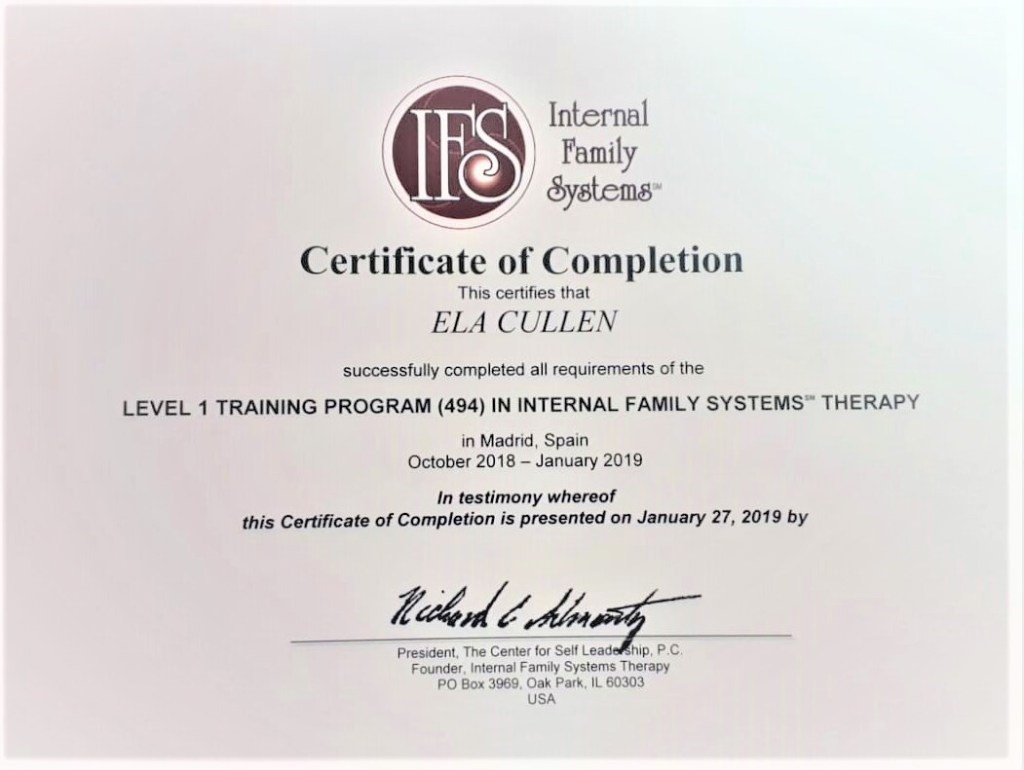 Zawodowo zajmuję się prowadzeniem terapii indywidualnych w modelu IFS, o którym możesz dowiedzieć się więcej tutaj, i już dziś serdecznie zapraszam Cię na sesje online, w języku polskim lub angielskim.